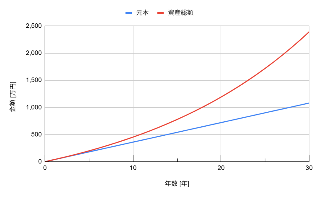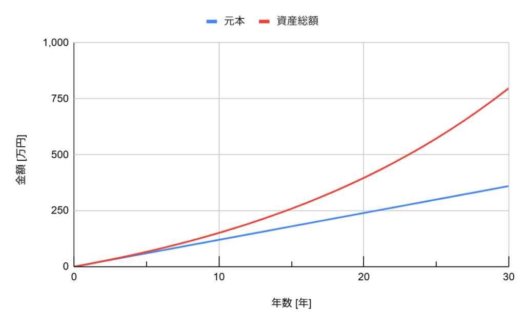 月1万円でも、30年でここまで増える。