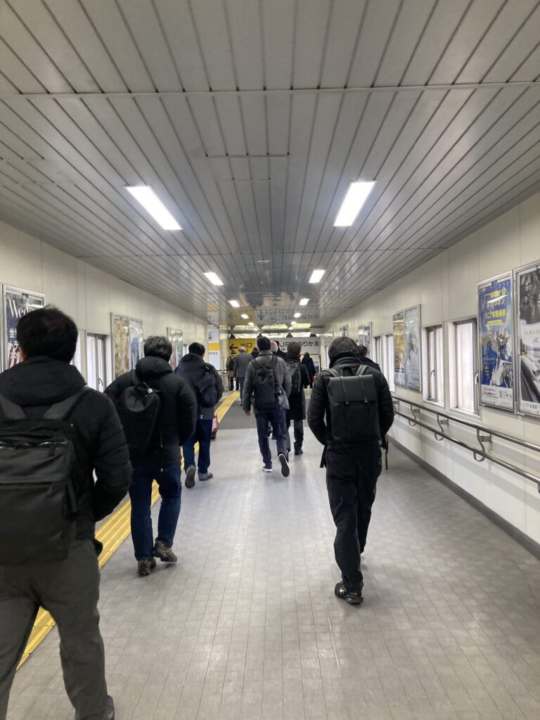 - 終点だったため沢山の人が降り、ホームで人が詰まり、