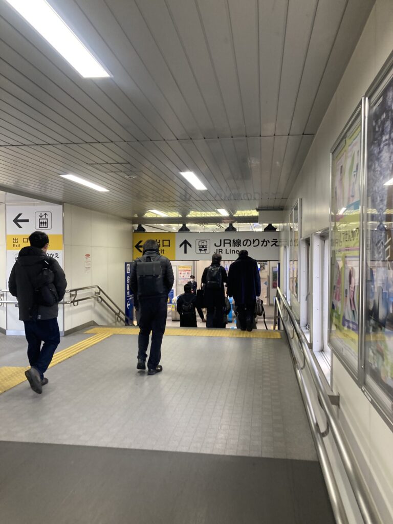 - 20mほど進み、7段ほどの小さな階段を降りると、JR乗り換え改札があります。