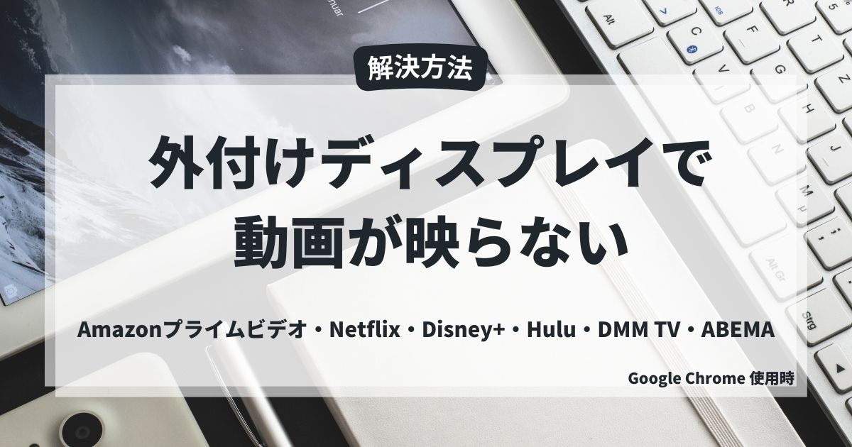 - 外付けディスプレイで動画配信サービス(Amazonプライムビデオ・Netflix・Disney+・Hulu・DMM TV・ABEMA)が真っ黒になる原因